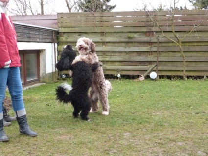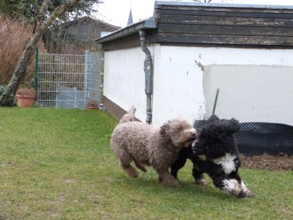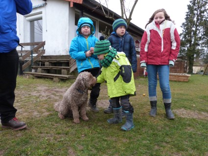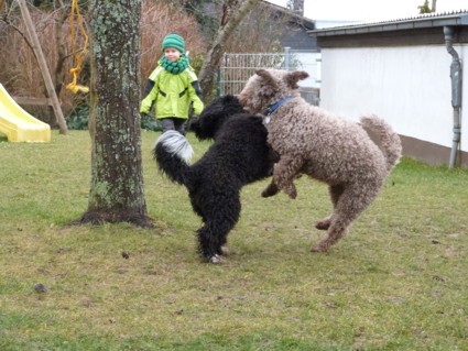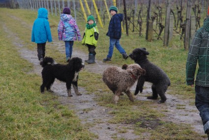 Und so starteten wir nach dem Gassigang Richtung Landau um Nicole und Steffen und unsere „Next Generation“ zu besuchen, die auch Rachel und Ekkehard mit Teddi und Michaela und Thomas mit Baco, aus unserem B-Wurf, eingeladen haben. Statt Sonne in der Pfalz, dicke Wolken und starke Windböen. Nach draußen ging es und direkt vor der Haustüre liefen wir mit viel Wind mitten in den Weinbergen. Es gab eine Menge Action, Kinder und Perros am Ballspielen und Toben. Und danach am Kaffeetisch bei Kaffee und leckerem Kuchen über Perros klönen und dem lustigen Treiben zuschauen. Ein vergnüglicher Nachmittag mit netten Menschen. Wir hatten alle sehr viel Spaß. Vielen Dank an Nicole und Steffen für die Einladung, es war ein sehr schöner Tag. Wir kommen wieder :o)