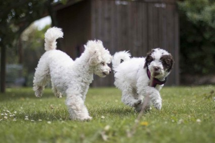 Pudel Kumpel an ihrer Seite. Die beiden verstehen sich bestens.