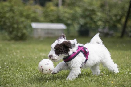 wie ein Flummi, ist sehr lieb und freundlich zu allen, unerschrocken bei Neuem,