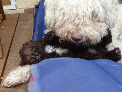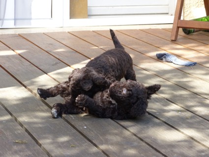 Flug und nun flitzt, bäfft und mampft es hier wie bei den Großen. Bonnie hat
