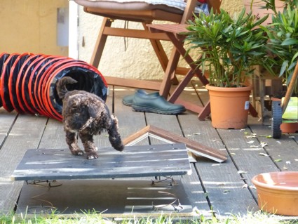 auf den Kopf gefallen und Escobar auch nicht auf die Schnauze. Escobar schafft als erster den Klimmzug über den Einstieg des Welpenauslaufs.