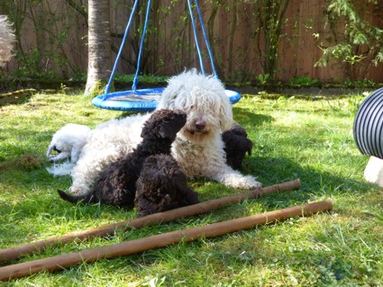 zeigte, sind wir mit den Welpen in den Garten ausgeflogen. Den Welpen gefällt