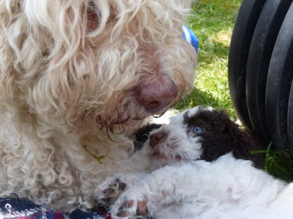 Teil vor der Welpenabgabe erledigt, unser Zuchtwart besuchte uns, um die Welpen
