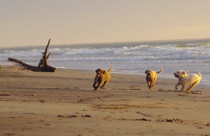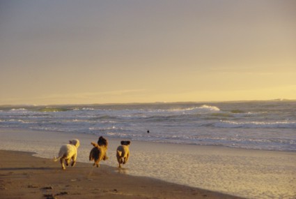 Badespaß, nachdem unsere Perras sich genüsslich nach dem Bad im Sand paniert