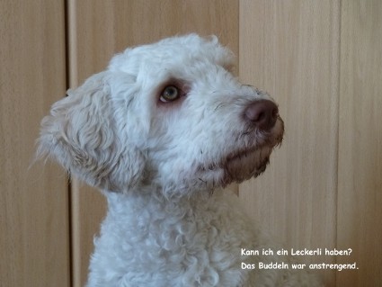 "Pflanzlöcher" gebuddelt. Das Unkraut jäten übt Coco noch ;-)