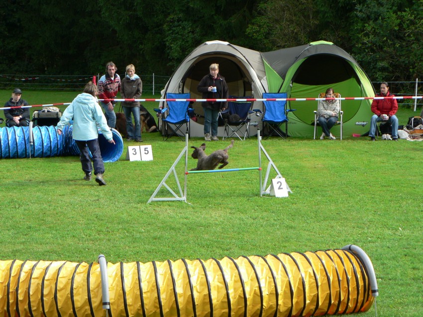 Nach anderthalbjähriger Turnierpause und etwas vernachlässigtem Training startete Chipsy beim Agility Fun Turnier des Vereins der Hundefreunde in Lorch. Nach der Parcoursbegehung war allen klar, woher das Turnier den Namen Hang-Cup hat! Der Parcours war schön rund und in rasantem Tempo nahm Chipsy die Hindernisse im A-Lauf. Mit fliegenden Ohren übersprang sie die Ziellinie nach einer Laufzeit von 35,19 sec. und erreichte den 5. Platz.