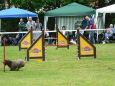 Die Woche darauf beim Turnier des SV OG in Ketsch leider ein "Dis" wegen nehmen eines falschen Hindernisses. Der Parcours auf A3 Niveau, mit einigen Verleitungen und äußerst schwierigen Slalomeingängen bzw. Sequenzen, bei denen es fast unmöglich war, mit dem Hund beim Slalom zu sein. Den Slalom fädelt sie mittlerweile aus allen möglichen Winkeln super schnell und selbstständig auch auf großen Distanzen ein. Leider gibt es nur dieses eine Bild. Bei einer Laufzeit von 30 sec. gestaltet sich das Fotografieren immer etwas schwierig...